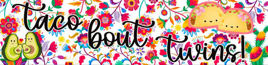 Taco bout twins baby girls shower banner, fiesta themed baby shower decoration, twin girls taco themed shower decor