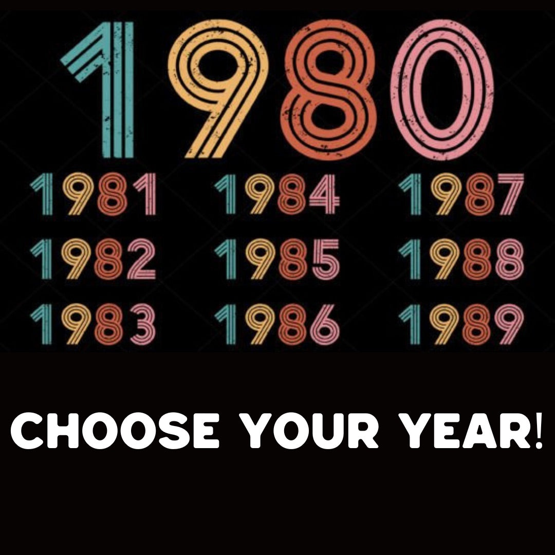 Introducing our Custom Birth Year Retro T-shirt, where you can proudly display your birth year from the iconic era of the 1980s. This shirt combines a distressed retro font with personalization, allowing you to showcase your unique connection to this nostalgic period.