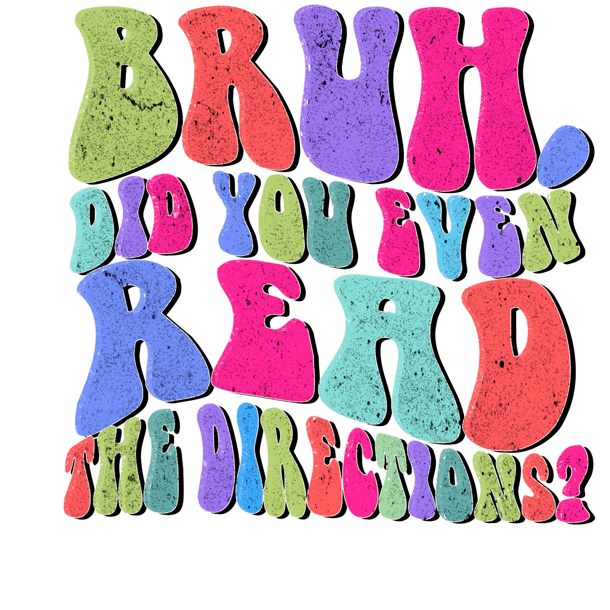Introducing our retro-inspired "Bruh. Did You Even Read the Directions?" T-shirt, designed to add a splash of colorful nostalgia to your wardrobe! With its vibrant distressed retro wavy font, this tee captures the essence of carefree vibes and a touch of playful humor. What truly sets this T-shirt apart is its bold message. The eye-catching phrase "Bruh. Did You Even Read the Directions?" emblazoned across the chest is sure to turn heads and spark laughter wherever you go. It's a playful reminder that sometimes, a little instruction can go a long way!