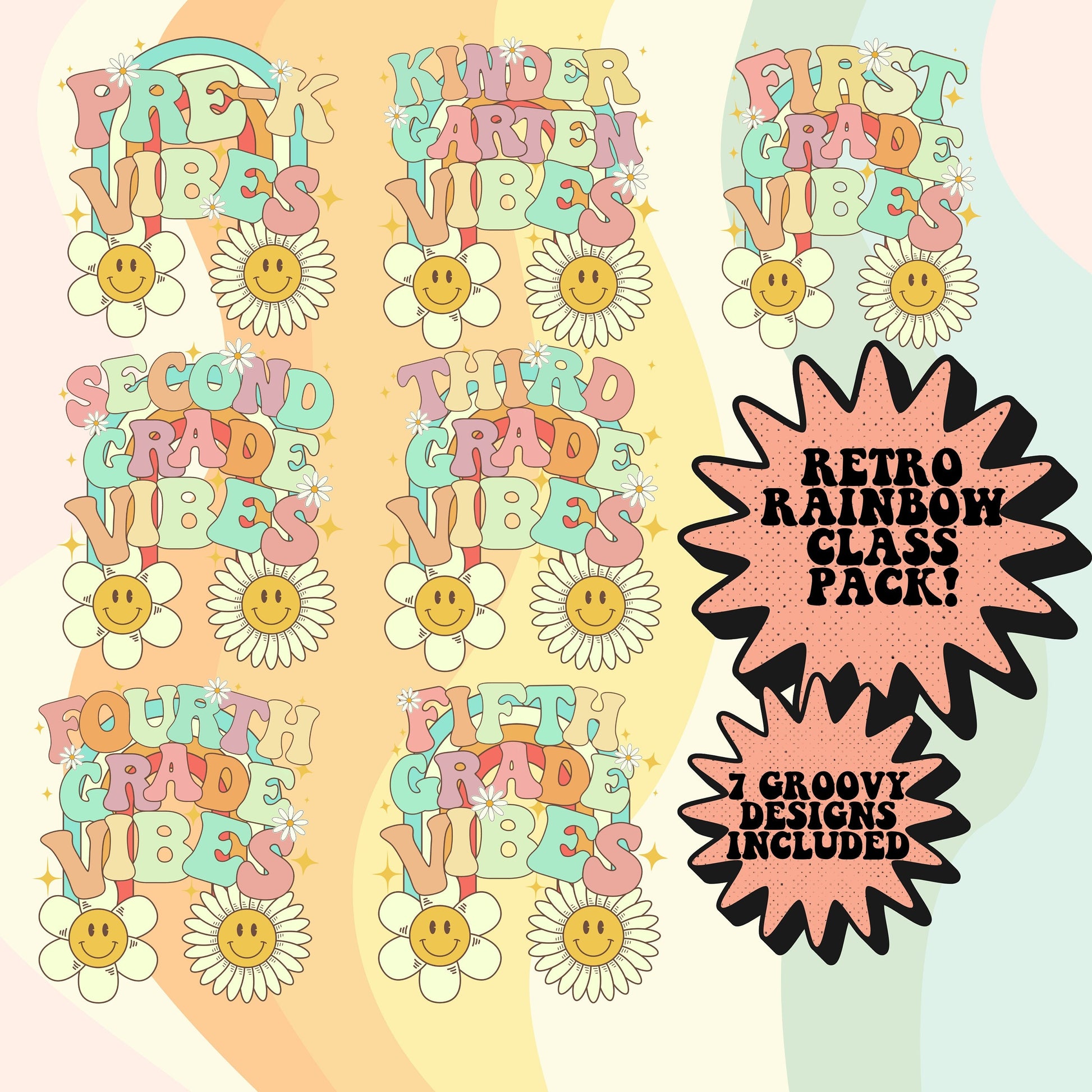Grade Level Retro Vibes PNG bundle Retro Font Digital PNG File Back to school rainbow smiley sunshine digital download, teacher kids shirt