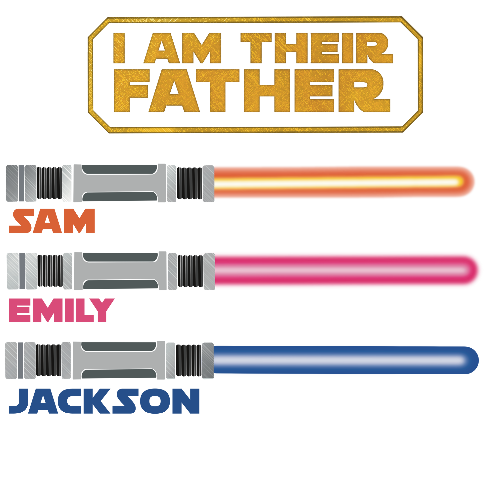 Attention all Star Wars-loving dads! This Father's Day, embrace the Force and showcase your love for your children with our exclusive "I am Their Father" T-Shirt. With its Star Wars-themed design featuring customizable light sabers representing your children's names, it's the perfect shirt to celebrate the epic bond between you and your little Jedi.