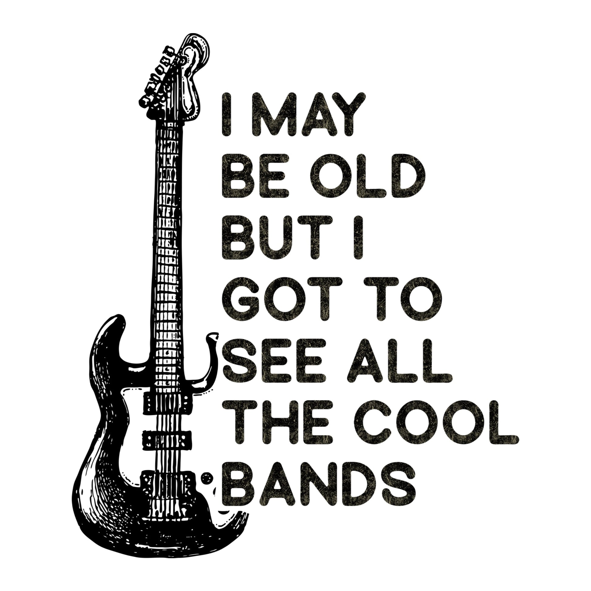 Introducing our "I May Be Old, But I Got to See All the Cool Bands" T-shirt, a stylish and nostalgic homage to the golden age of rock 'n' roll. This shirt celebrates the wisdom and experience that comes with age while proudly reminiscing about witnessing the legendary performances of iconic bands.