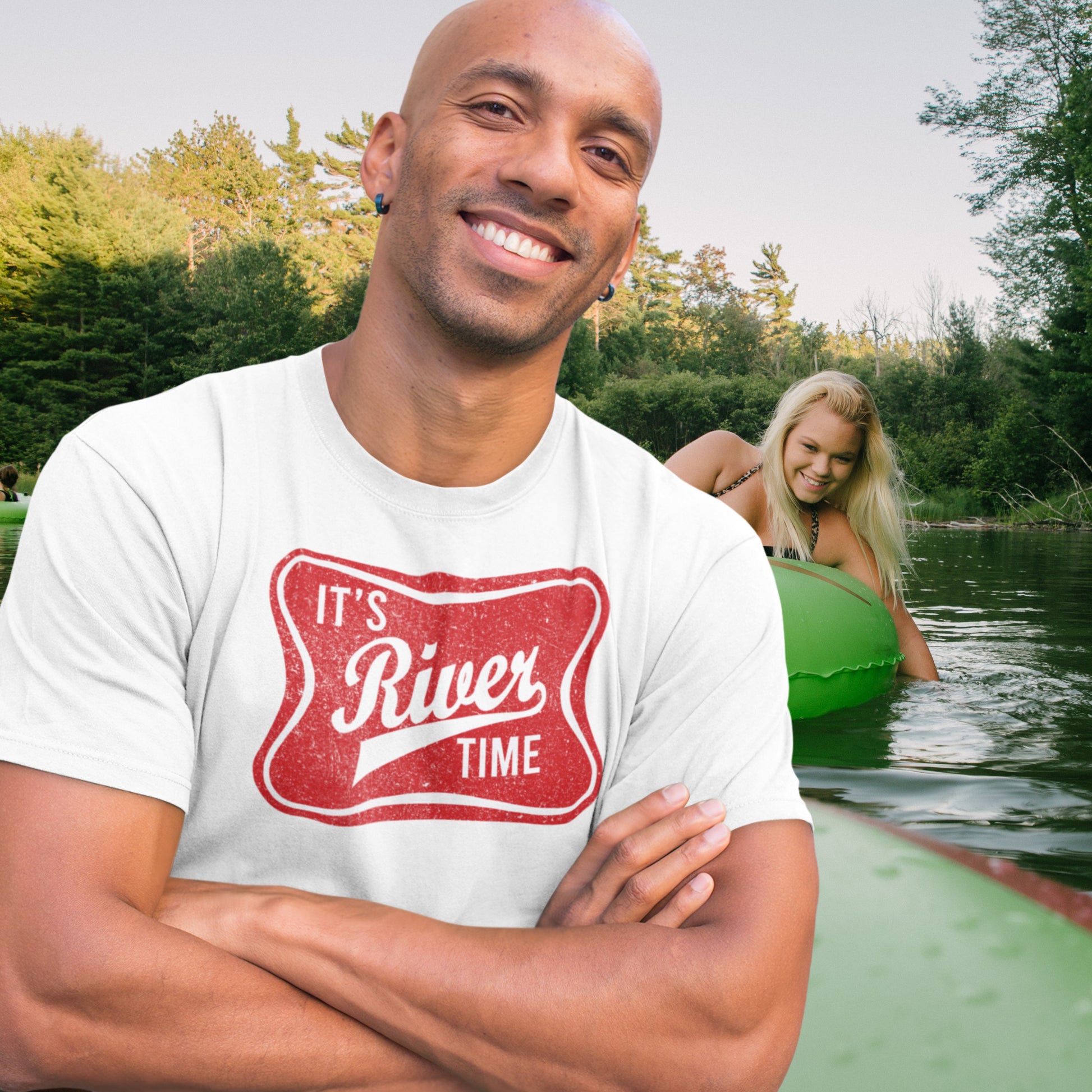 So, grab your favorite tube, gather your friends, and let everyone know that it's time to hit the river. With the "It's River Time" T-shirt, you're not just wearing a shirt – you're making a statement, declaring your unwavering love for the water and all the unforgettable memories it holds.