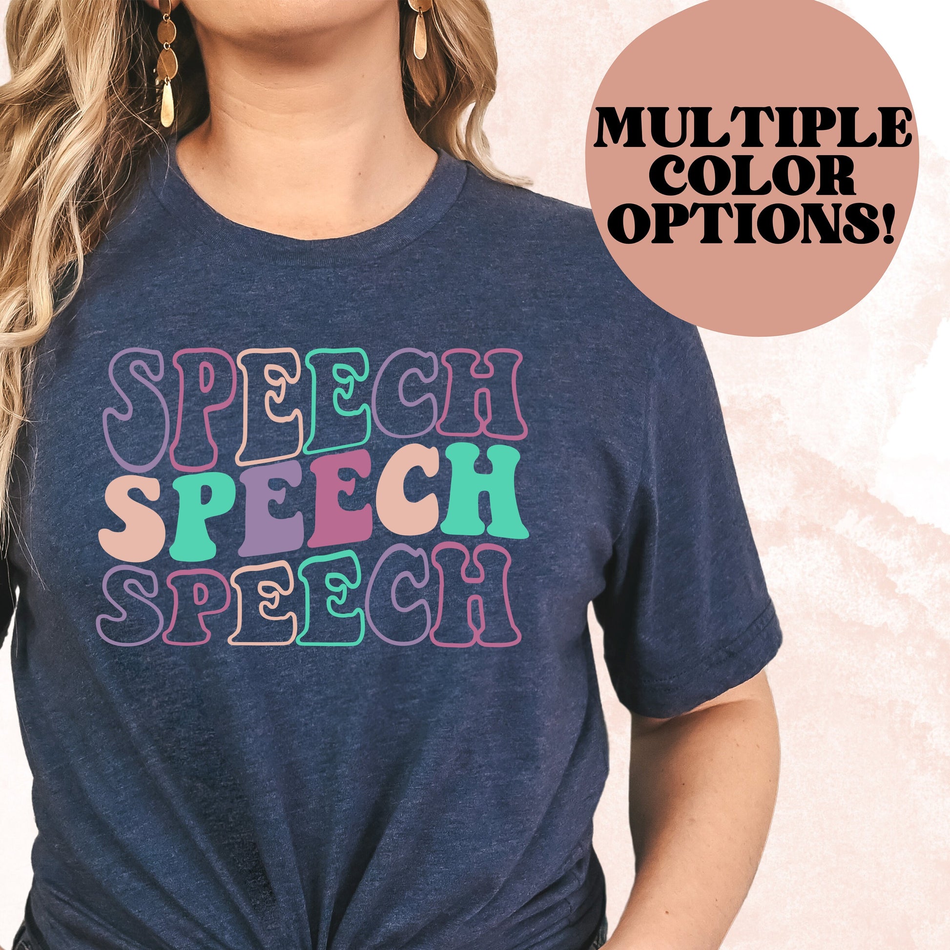 Looking to make a statement in style while showcasing your passion for speech-language pathology? Look no further than our exclusive 'Speech' T-Shirt! this unique tee is designed to captivate attention and spark conversations. Embrace nostalgia with our eye-catching retro wavy font, giving your outfit a trendy and timeless touch. Whether you're a seasoned speech-language pathologist or a budding professional, this T-shirt is an absolute must-have to represent your dedication to helping others find their voice.