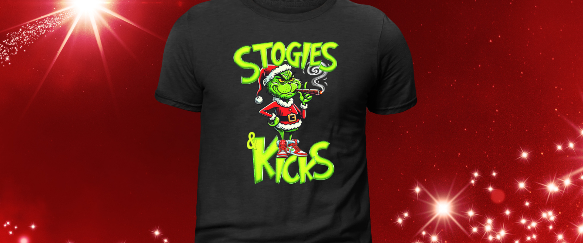 Get ready for the ultimate festive vibe at Stogies & Kicks with our exclusive holiday-themed T-shirt designs! Whether you’re lighting up a stogie or showing off your kicks, these shirts bring the perfect blend of holiday cheer and bold style. 🎁✨