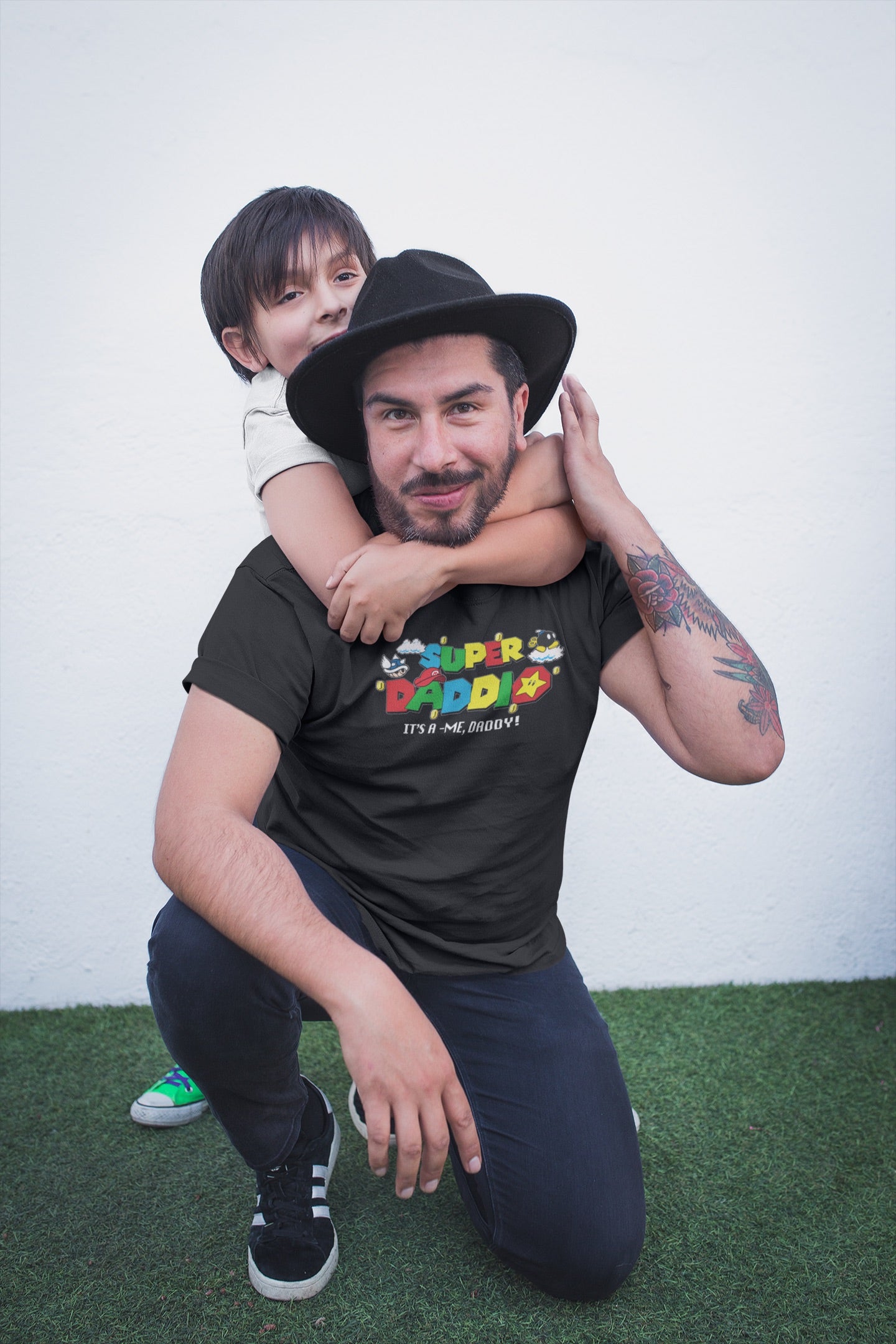 Introducing our "Super Daddio" T-shirt, the perfect tribute to all the amazing dads out there who are everyday superheroes in the lives of their children. Combining the iconic imagery of Super Mario and phrase “it’s-a-me,daddy!” It’s a playful nostalgic twist and celebrates the incredible powers and love that dads possess for their kiddos.