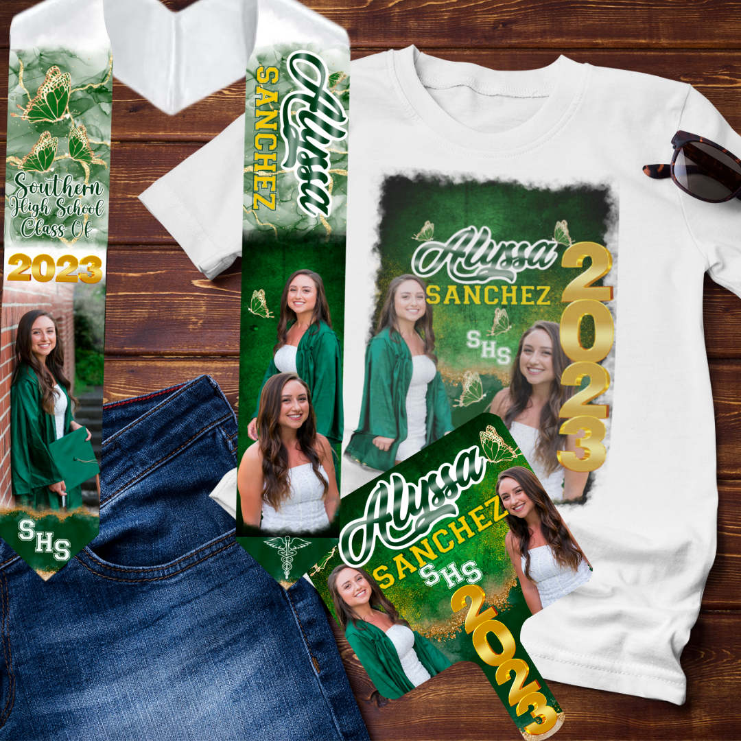 Ultimate grad package- Custom Stole, T-shirt, and Fan Paddle